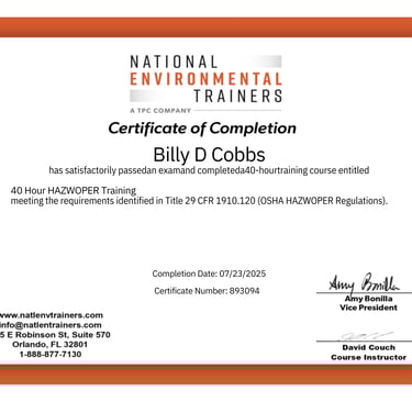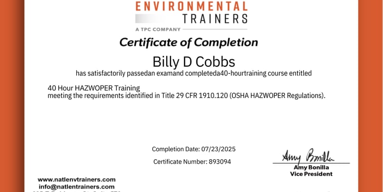 HAZWOPER 40 Compliant • OSHA Compliant • Amdecon Trained